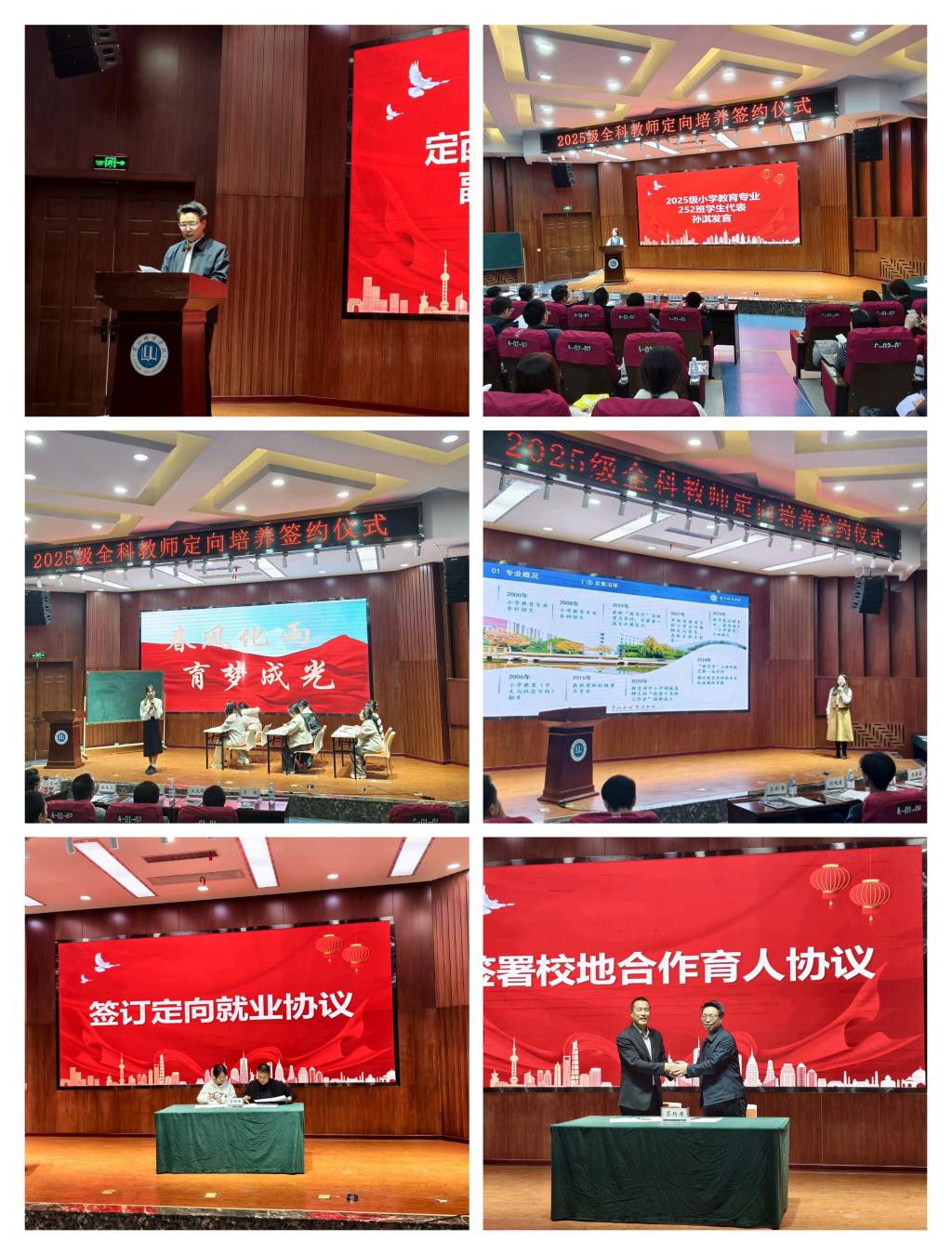 此次签约仪式是学校深化产教融合、推进校地合作的重要成果,为协同培养“下得去、留得住、教得好”的优秀教师奠定了坚实基础。学校将以此为契机,持续优化人才培养模式,强化教学实践环节,健全校地协同机制,为区域基础教育高质量发展提供坚实人才支撑。