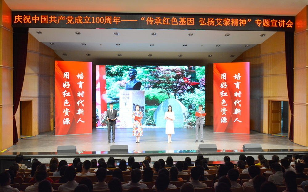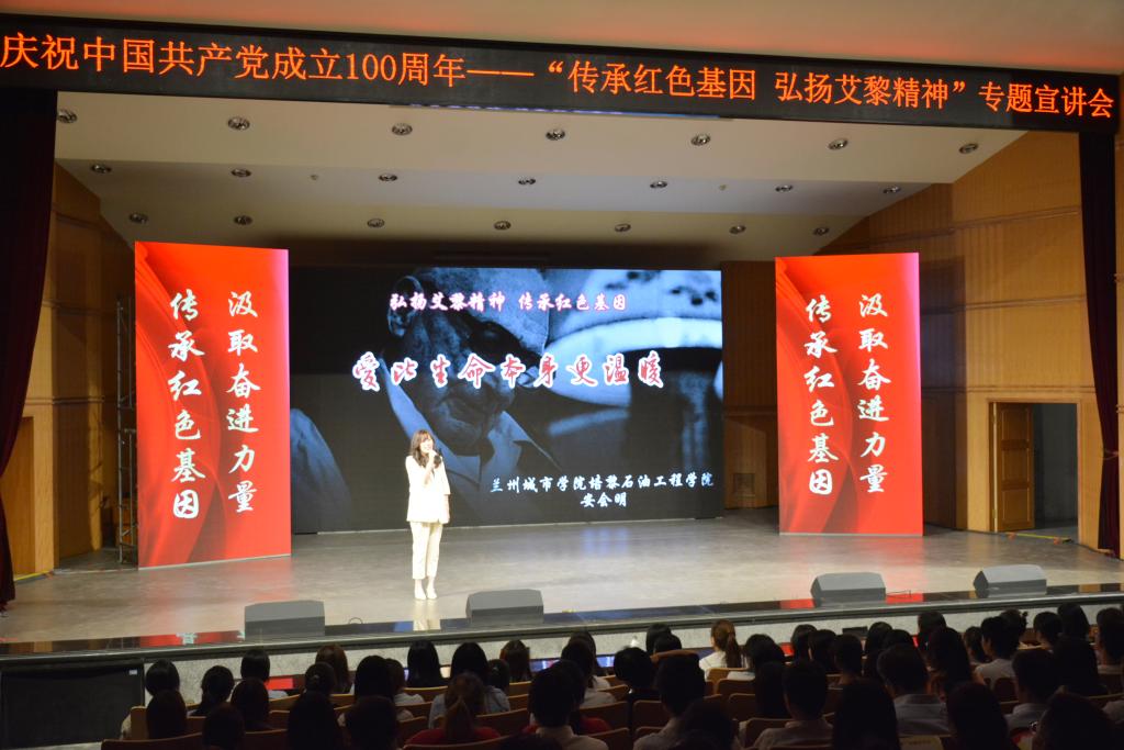 为庆祝中国共产党成立100周年,用好校本红色资源,讲好红色故事,传承红色基因,推动学校党史学习教育走深走实,6月21日晚,由兰州城市学院、兰州市安宁区委区政府主办的“传承红色基因 弘扬艾黎精神”专题宣讲会在校本部音乐厅举行。省政协原副主席、省延安精神研究会会长 李沛文,省延安精神研究会副会长康民,省延安精神研究会秘书长、省委宣传部二级调研员刘雄文,省教育厅思政处处长敏维奇、副处长孙祥宁,省友协友城处处长朱玉明,安宁区委书记郭海泉,区委副书记张吉彬,区委常委、宣传部长王亚军,副区长刘燕霞,校领导许尔忠、王学军、王基、牟录贵与兰州城市学院师生代表500余人参加了活动。