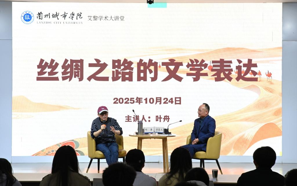 10月24日,一场浸润敦煌文脉与丝路诗意的文学盛宴在 兰州城市学院温情启幕。鲁迅文学奖得主、甘肃省文联副主席兼省作协主席叶舟,以《丝绸之路的文学表达》为题开坛授课,带领师生穿越千年风沙,解锁文学与丝路文化交融的独特魅力,为校园播撒下传承文化的“文学种子”。校党委常委、副校长方忠义主持讲座,文史学院、大学生通讯社师生130余人参加活动。