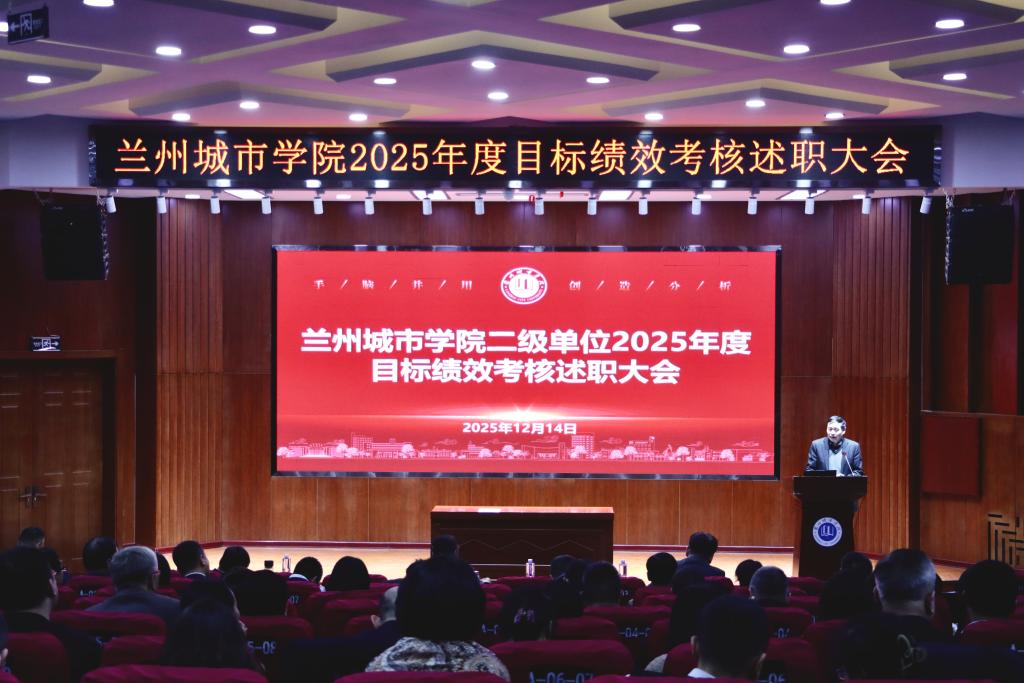 12月14日,兰州城市学院二级单位2025年度目标绩效考核述职大会在校本部大学生活动中心召开。全体校领导、党委常委出席会议,全体处级干部、教职工代表参加会议。校党委副书记牟录贵主持会议。