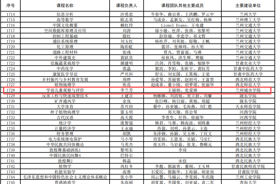 近日,教育部公布了第三批国家级一流本科课程认定结果,教育学院李兰芳教授担任课程负责人的《学前儿童观察与评价》课程成功入选线下一流课程,这是我校课程建设取得的又一重要突破。