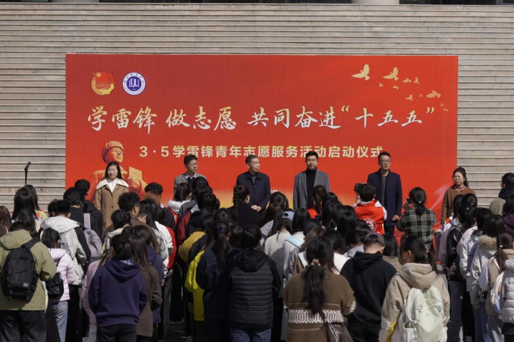 时值第63个“学雷锋纪念日”和第27个“中国青年志愿者服务日”,为深入学习宣传贯彻党的二十大和二十届历次全会精神,落实习近平总书记关于弘扬雷锋精神和志愿服务的重要论述,引导青年志愿者以实际行动传承雷锋精神、服务陇原发展,为“十五五”建设贡献青春力量,3月5日中午,学校在校本部文萃广场举行“学雷锋 做志愿 共同奋进十五五”学雷锋志愿服务活动月启动仪式。校党委常委、副校长李慕堂出席仪式并致辞。党委宣传部、党委学生工作部、素质教育与教学中心、校团委负责人,各学院团干部及青年志愿者代表500余人参加活动。