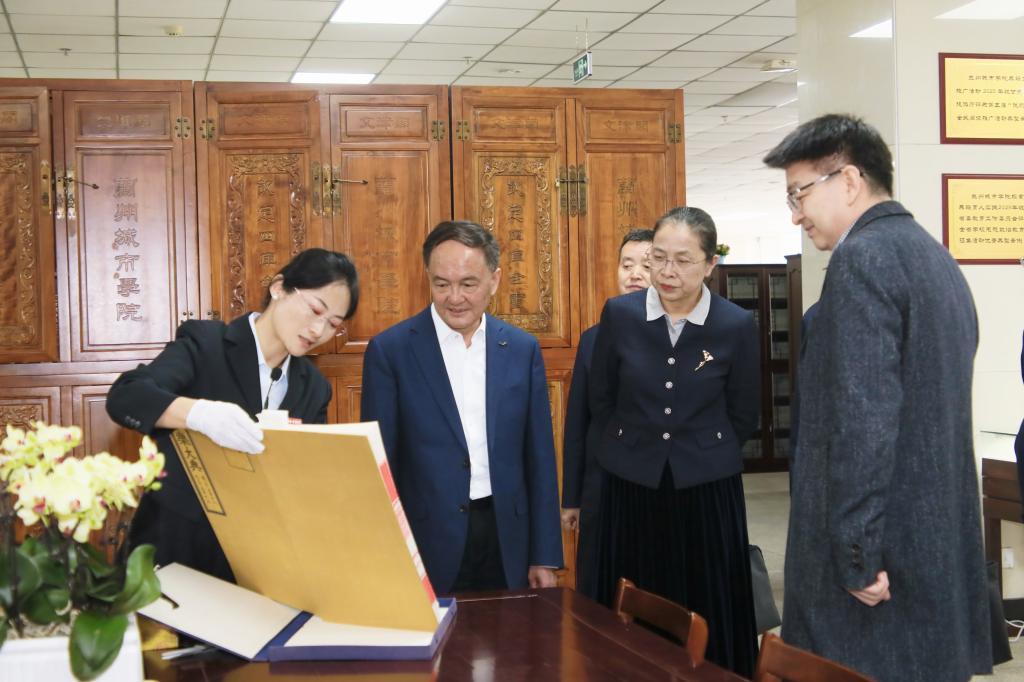 签约仪式前,王贵玉一行实地参观了张芝书法院、逸夫图书馆特藏文献阅览区、艺术设计学院“艾·美”校园文创展。