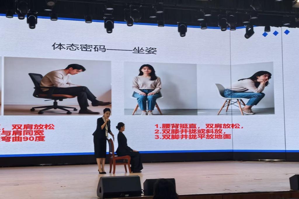 本次训练营特邀礼仪培训师丁丹婷、李颖越担任主讲。丁丹婷以《以礼润心 赋能成长——知礼·用礼·成礼》为题,围绕校园礼仪、文明礼仪、仪容仪表、行为礼仪、面试着装及教室、图书馆、食堂场景礼仪等内容进行讲授。李颖越结合实际案例进行现场互动,帮助参训学生掌握日常学习生活中的礼仪规范与沟通技巧。参训学生认真聆听,积极参与互动,现场学习氛围浓厚。