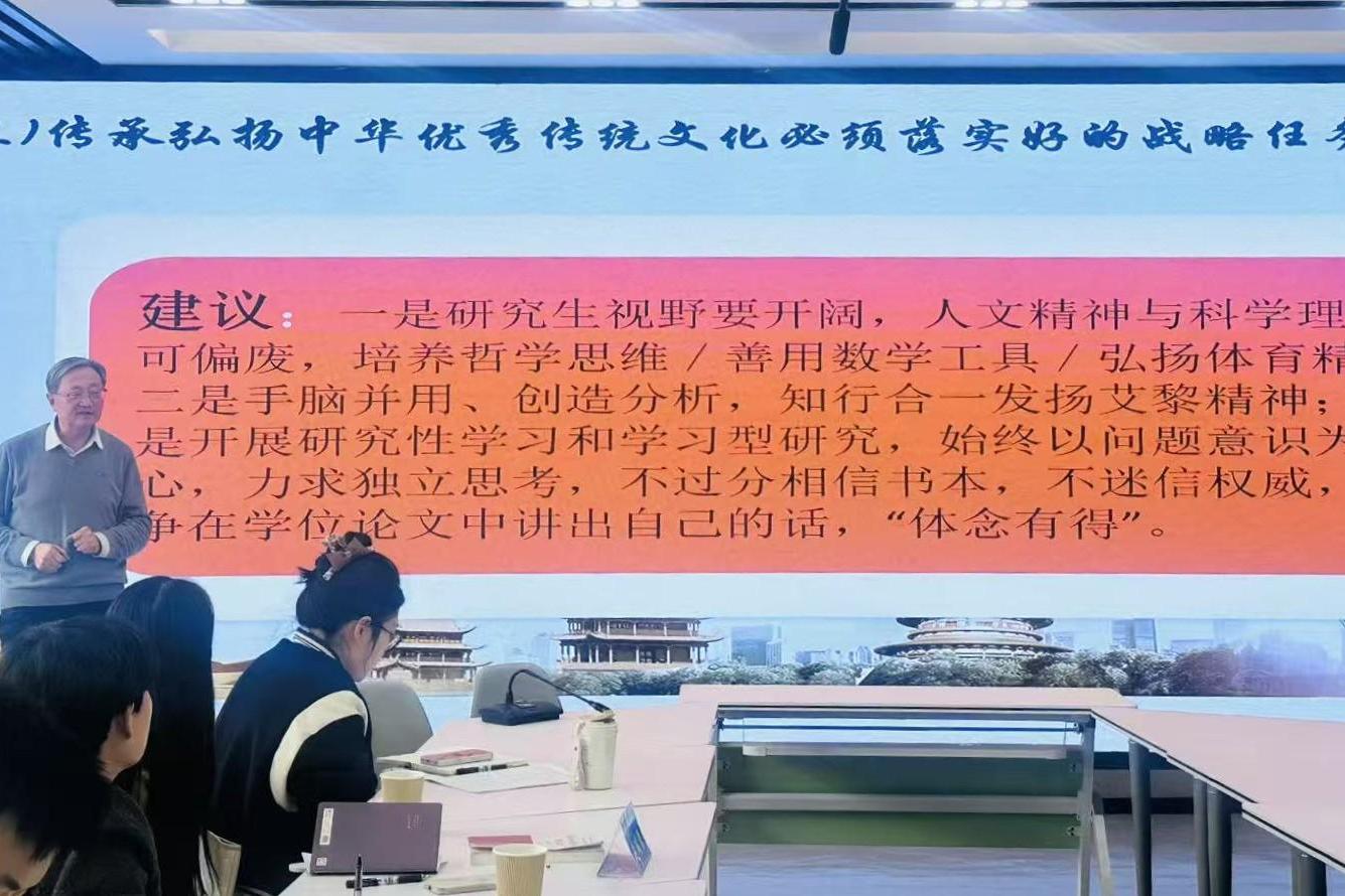 为深刻把握习近平文化思想的丰富内涵与核心要义,引导广大研究生自觉担当新时代新的文化使命,11月6日上午,兰州大学教授、博士生导师,兰州城市学院特聘教授、马克思主义学院名誉院长、路易·艾黎研究中心名誉主任范鹏教授走进《新时代中国特色社会主义理论与实践》课堂“名师讲坛”,为学校全体研究生作题为《学习贯彻习近平文化思想 传承弘扬中华优秀传统文化》的专题讲座。讲座由马克思主义学院负责人主持,马克思主义学院无课教师参加学习。