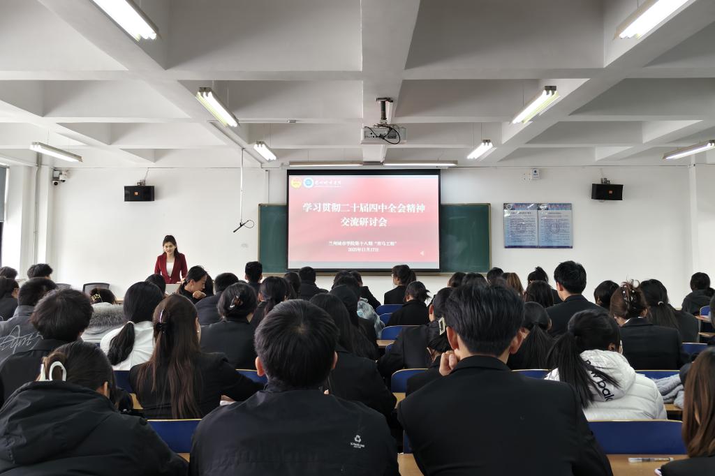 为深入学习宣传贯彻党的二十届四中全会精神,切实把全校各级团学组织和广大团员青年的思想统一到党中央决策部署上来,锚定高水平应用型大学建设目标,推动学校事业高质量发展,11月17日中午,兰州城市学院第十八期“青马工程”校级示范班在校本部知行楼组织召开学习贯彻党的二十届四中全会精神交流研讨会,示范班全体学员参加学习研讨。
