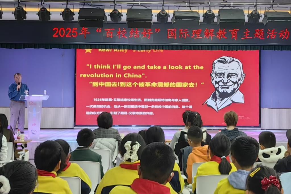活动中,我校新西兰籍外教 Colin McCulloch(科林・麦克库洛奇)以生动的讲述带领小学生们重温了路易・艾黎扎根中国、投身人民解放事业与教育事业的传奇历程。在互动体验环节,我校来华留学生与小学生结对参与手工创作、故事分享等活动,现场气氛热烈。