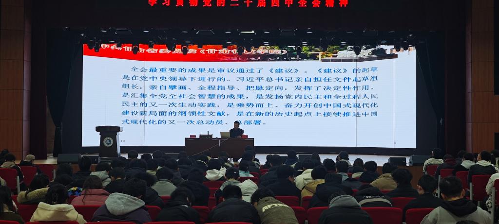为深入学习贯彻党的二十届四中全会精神,引导师生准确理解全会核心要义,12月19日下午,培黎石油工程学院在培黎校区大学生活动中心举办学习贯彻党的二十届四中全会精神专题讲座。本次讲座邀请甘肃省委党校马克思主义学院院长李振佑教授主讲,学院全体教师与学生代表参加讲座。