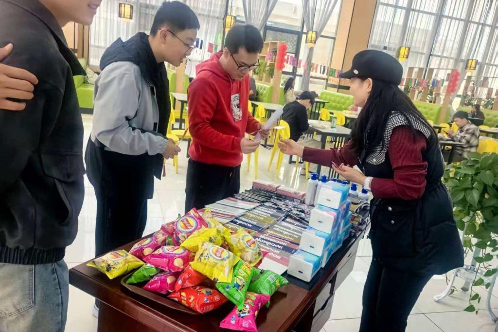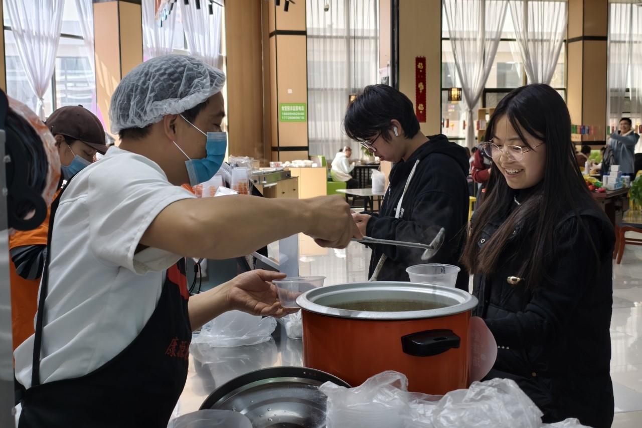 活动现场悬挂灯笼彩带,营造出浓厚的节日氛围。食堂工作人员为师生免费发放元宵,大家围坐品尝,共话节日习俗,感受团圆寓意。猜灯谜环节中,师生们驻足思考、相互交流,在趣味互动中体验传统文化的魅力。