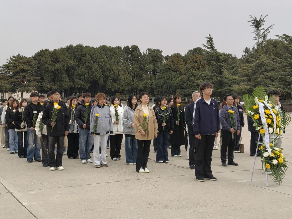 在烈士陵园,全体师生整齐列队,高唱《中华人民共和国国歌》,向为民族解放事业英勇献身的先烈们默哀致敬。师生代表向烈士纪念碑敬献鲜花,表达对先烈的深切缅怀。