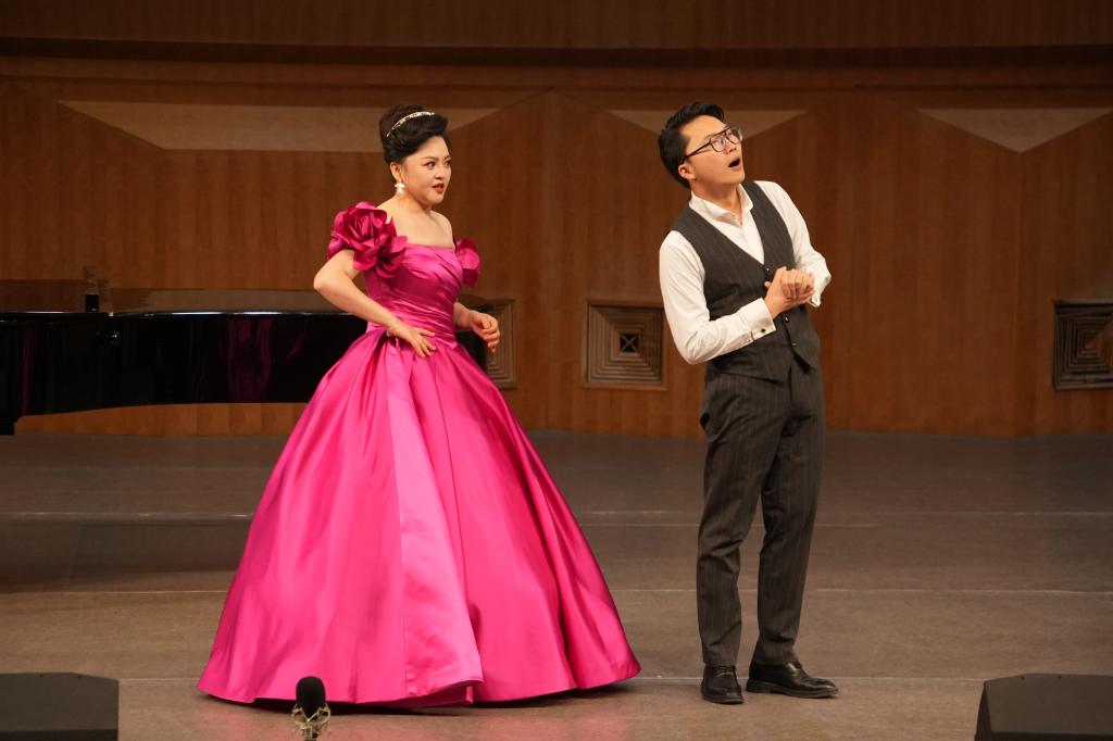 音乐会曲目涵盖中国艺术歌曲、传统民歌、西洋艺术歌曲及歌剧咏叹调,体裁丰富多样。孙淼以《静夜思》《爱人送我向日葵》两首中国艺术歌曲开场,将古典诗词的意境与音乐表达巧妙结合;随后演唱的《春归》《一杯美酒》展现出鲜明的民族风格,旋律优美动听;《漫步街上》《侯爵请听》等西洋歌剧作品,凭借扎实的演唱技巧和细腻的情感处理,呈现了古典声乐的艺术魅力。莫扎特、普契尼、施特劳斯等作曲家的歌剧选段将现场气氛推向高潮。甘肃省歌剧院小提琴演奏员黄莹、青年男中音谭帅应邀担任助演嘉宾,为音乐会增添了更多精彩。