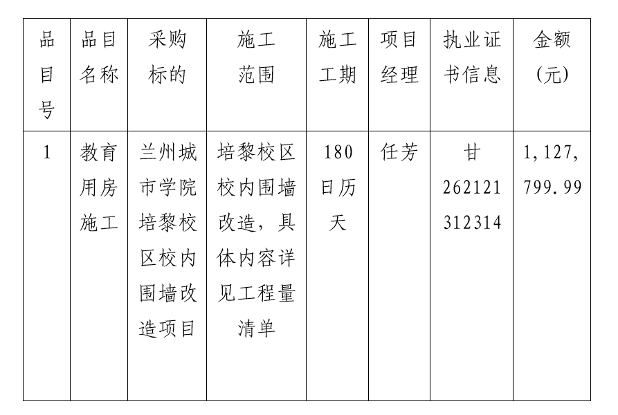 合同包1(兰州城市学院培黎校区校内围墙改造项目):