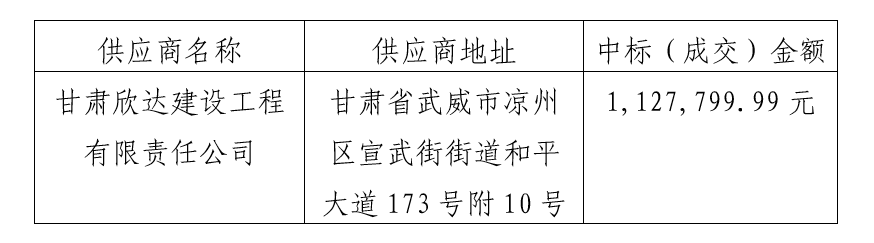 代理服务费收费标准:供应商应支付给甘肃安宇工程造价咨询有限公司招标服务费(收费标准参照国家计委计价格【2002】1980号文和发改办价格【2003】857号文中招标类型差额定率累进法计算)和其他与之相关的费用。