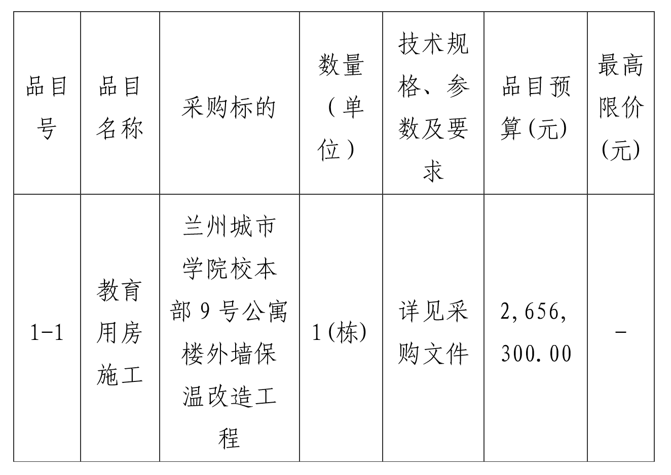 合同包1(兰州城市学院校本部9号公寓楼外墙保温改造工程):