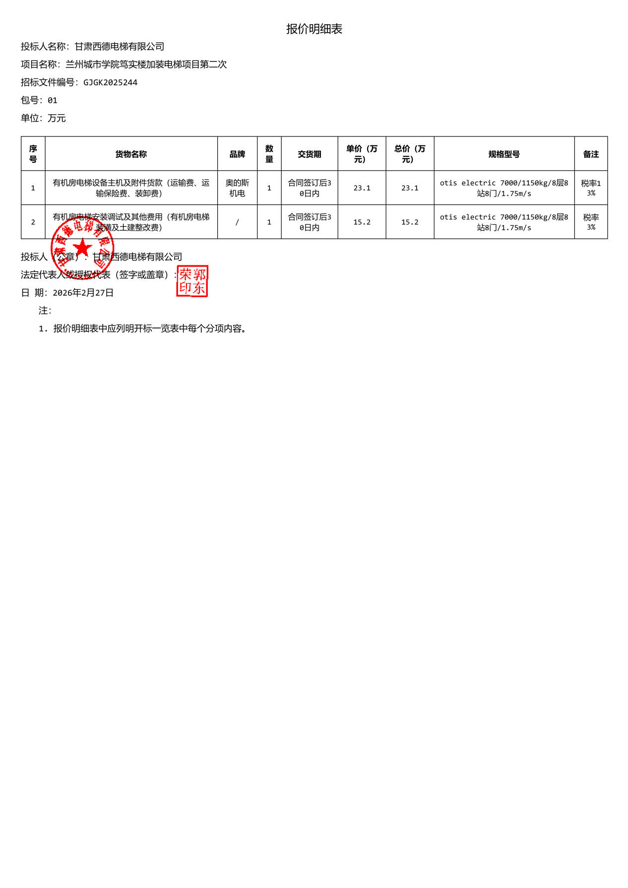 合同包1(兰州城市学院笃实楼加装电梯项目):