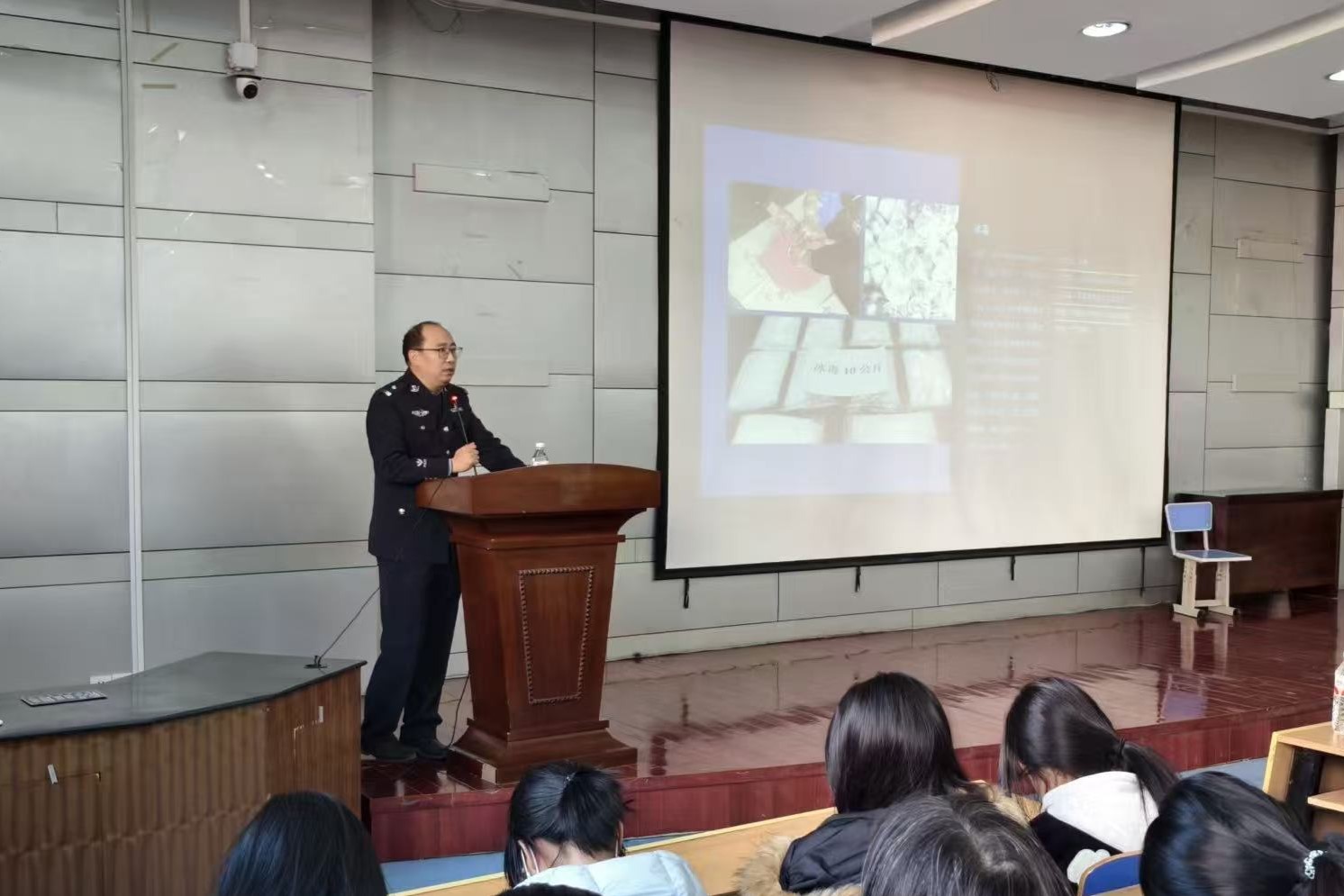 11月29日,学院邀请甘肃省第二强制隔离戒毒所五大队教导员作“远离毒品,从预防药物滥用开始”专题讲座。主讲教师系统介绍了传统毒品、合成毒品及新型精神活性物质的特征,重点揭露“聪明药”“上头电子烟”等新型毒品的伪装形式,通过真实案例剖析药物滥用的危害,帮助学生提升识毒防毒能力。